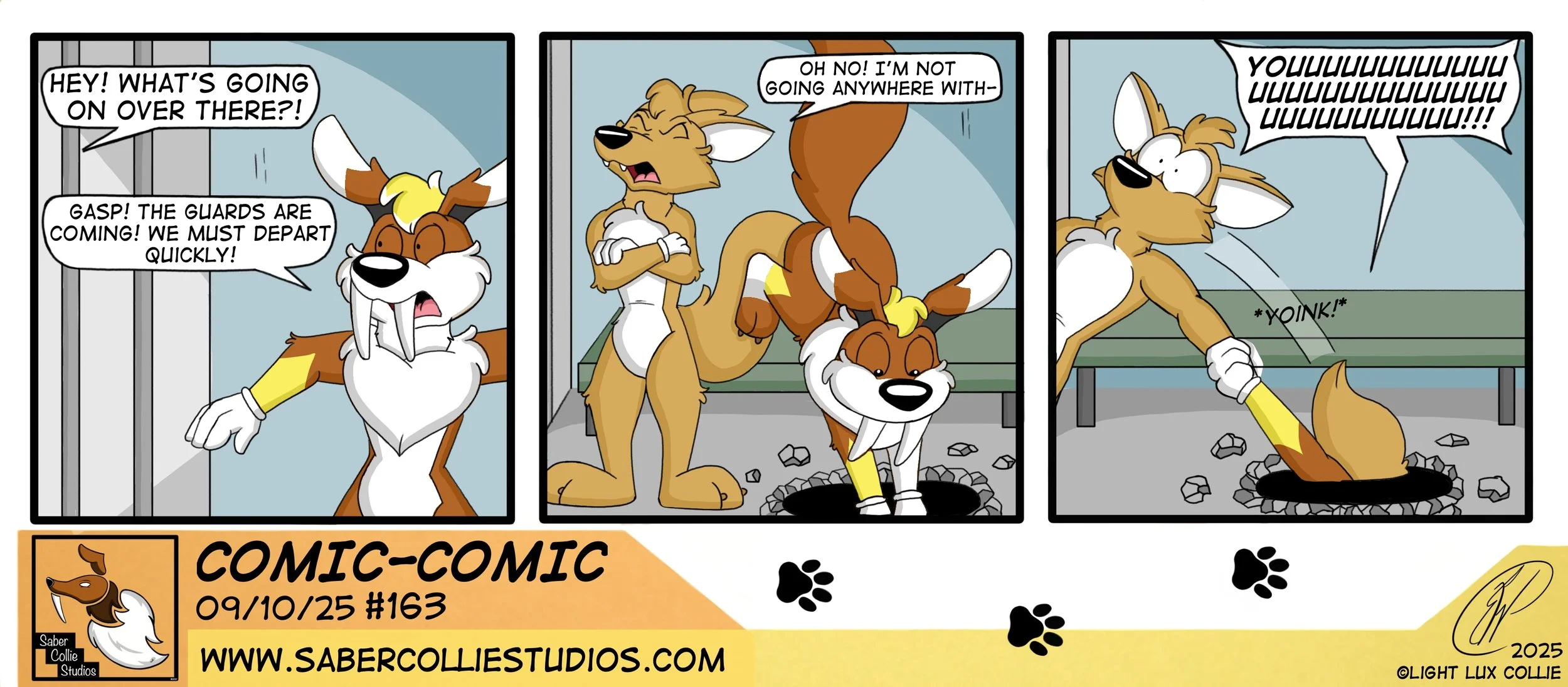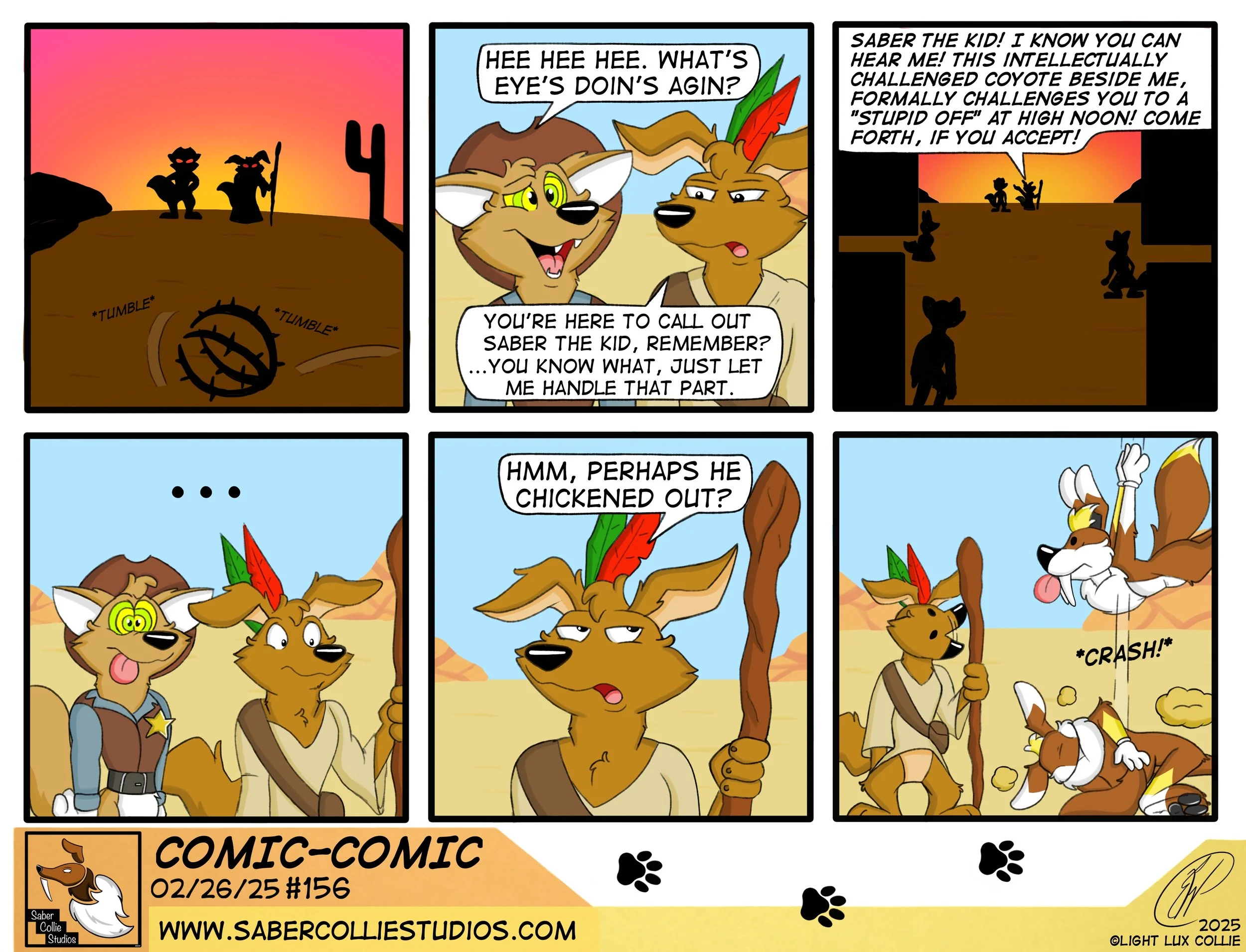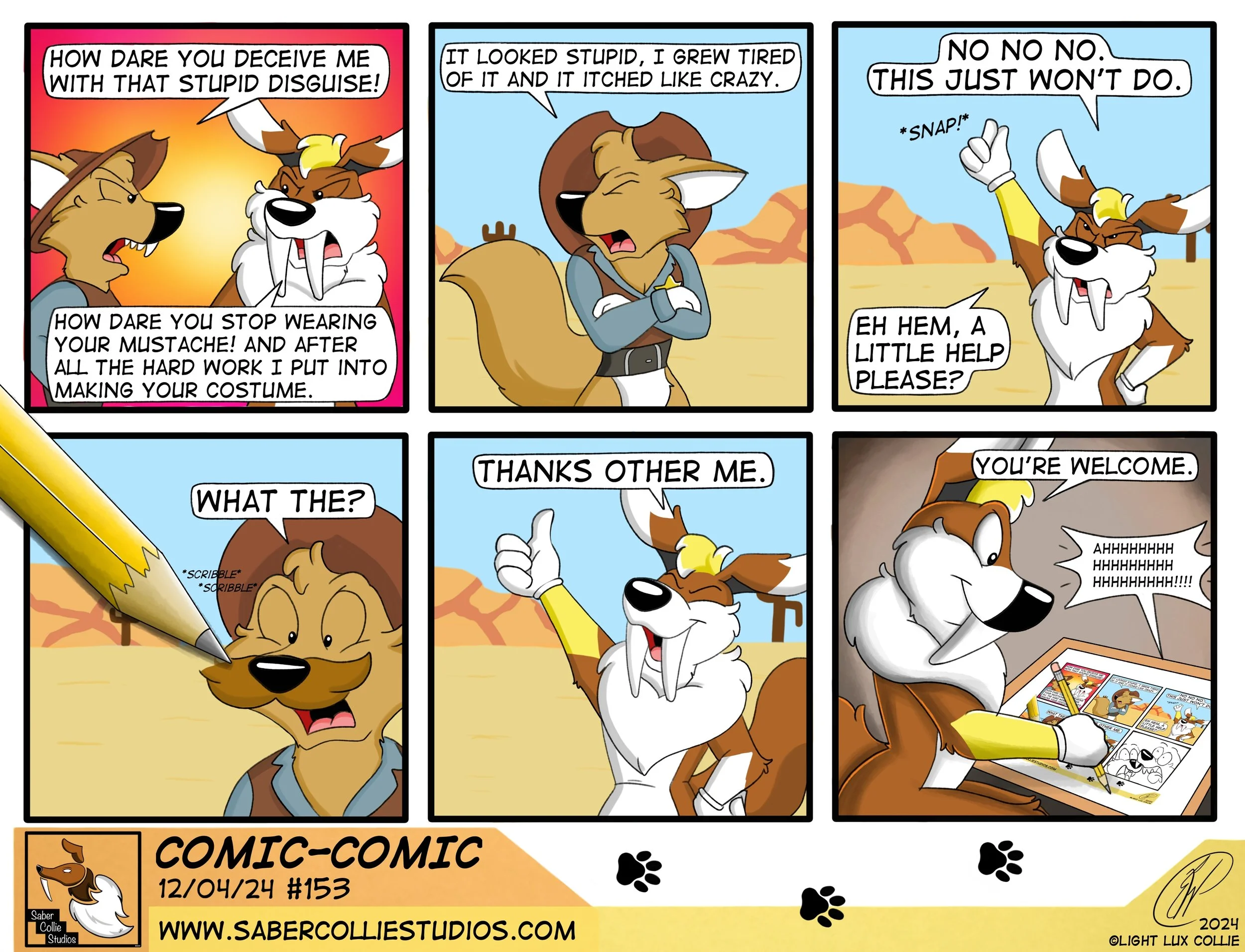 Home of the webcomics Denatured, Comic-Comic and Walk With Me. Saber Collie Studios is an online cartoon art studio individually owned and operated by cartoonist and animator Light Lux Collie.