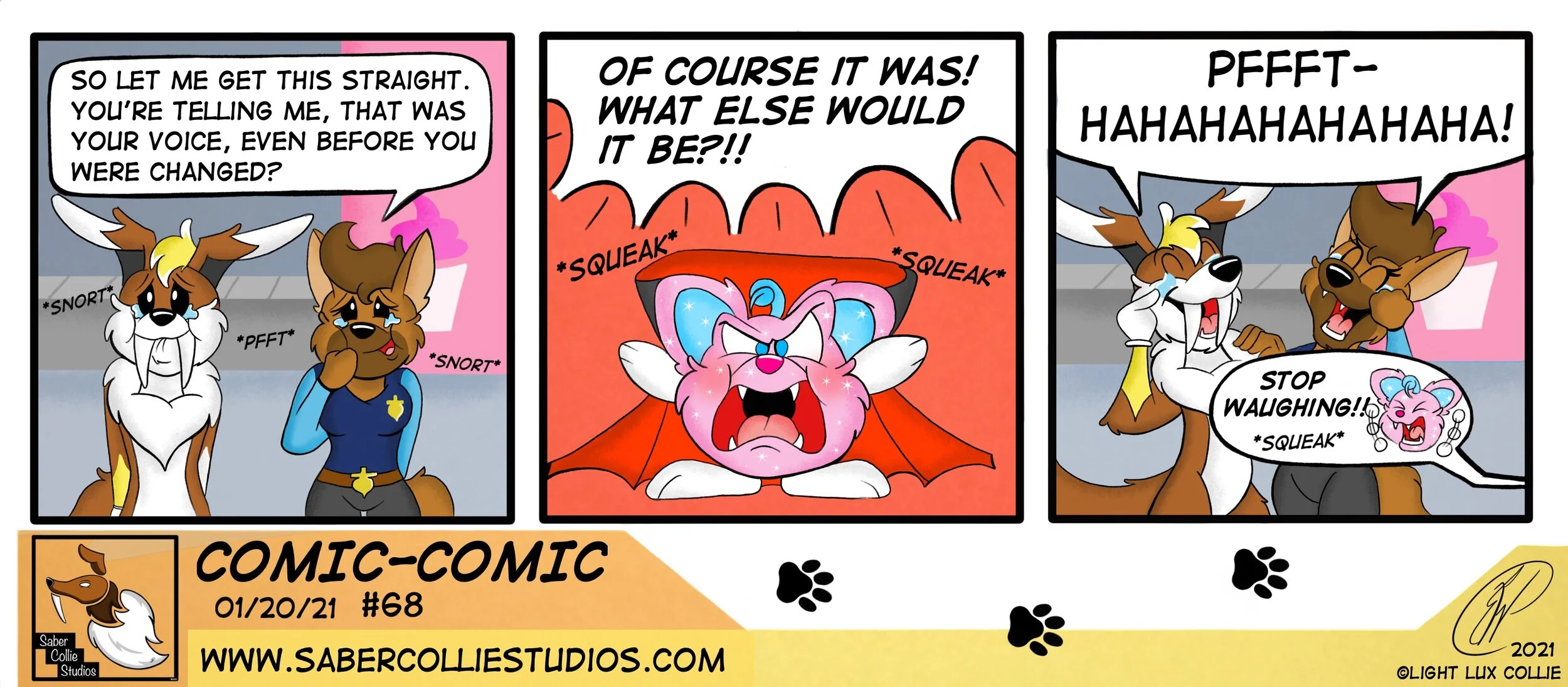Home of the webcomics Denatured, Comic-Comic and Walk With Me. Saber Collie Studios is an online cartoon art studio individually owned and operated by cartoonist and animator Light Lux Collie.