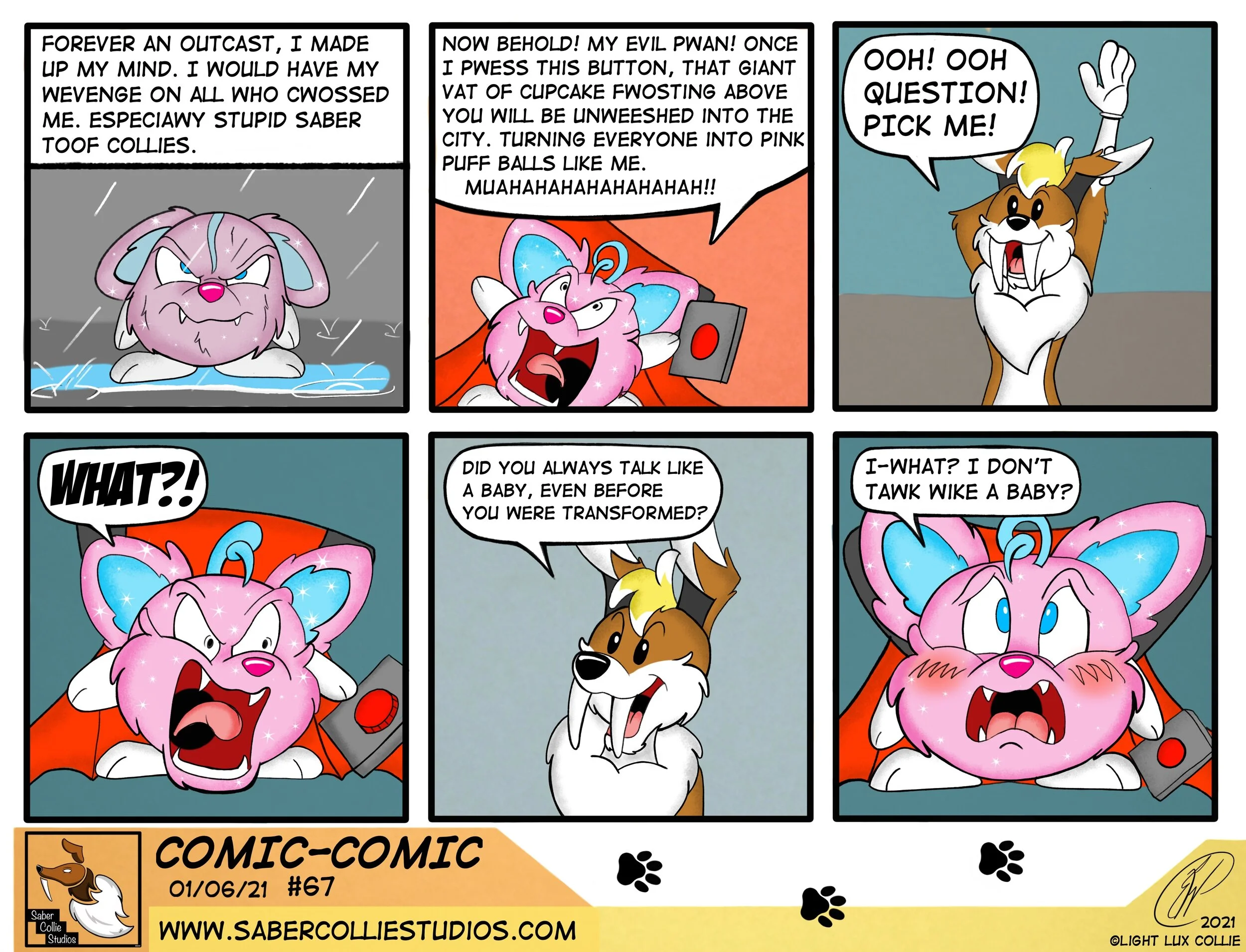 Home of the webcomics Denatured, Comic-Comic and Walk With Me. Saber Collie Studios is an online cartoon art studio individually owned and operated by cartoonist and animator Light Lux Collie.