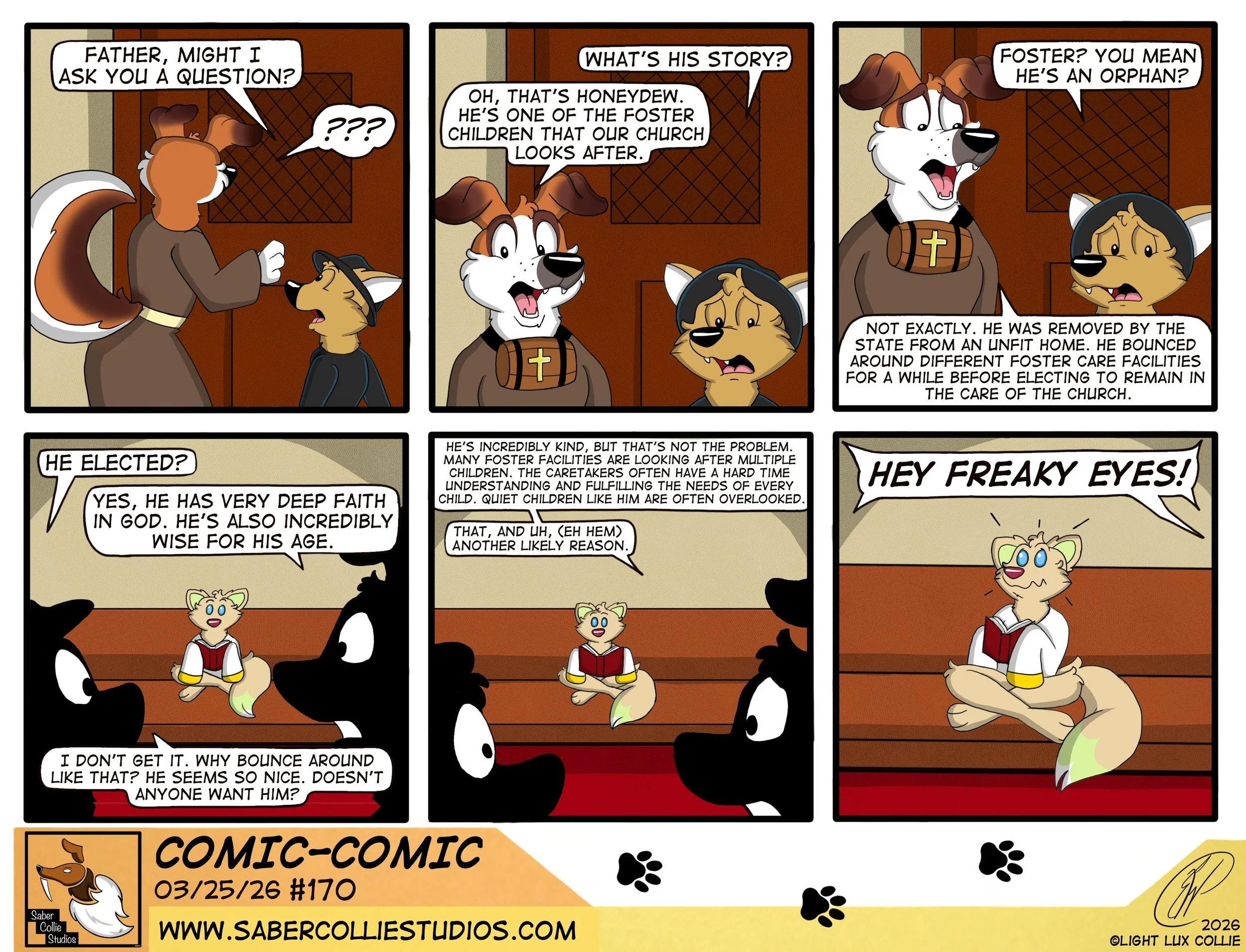 Home of the webcomics Denatured, Comic-Comic and Walk With Me. Saber Collie Studios is an online cartoon art studio individually owned and operated by cartoonist and animator Light Lux Collie.