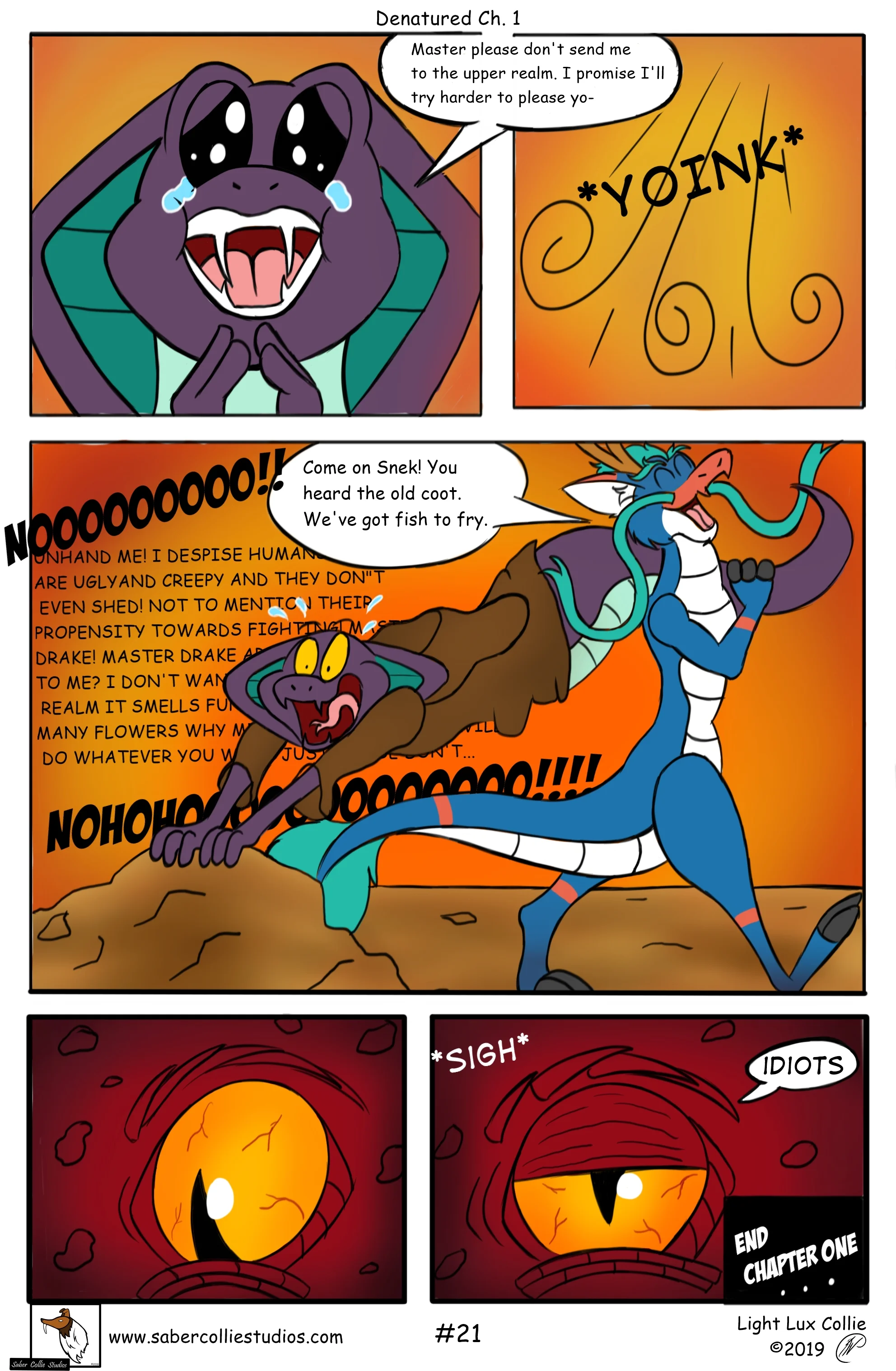 /Alrighty folks! We have finally reached the last page of chapter one. So sorry it took so long. The main purpose of this chapter was to establish the setting and whats going on. NOW WE CAN FINALLY GET TO THE GOOD STUFF. Chapter two is right on the horizon. So stay tooned.