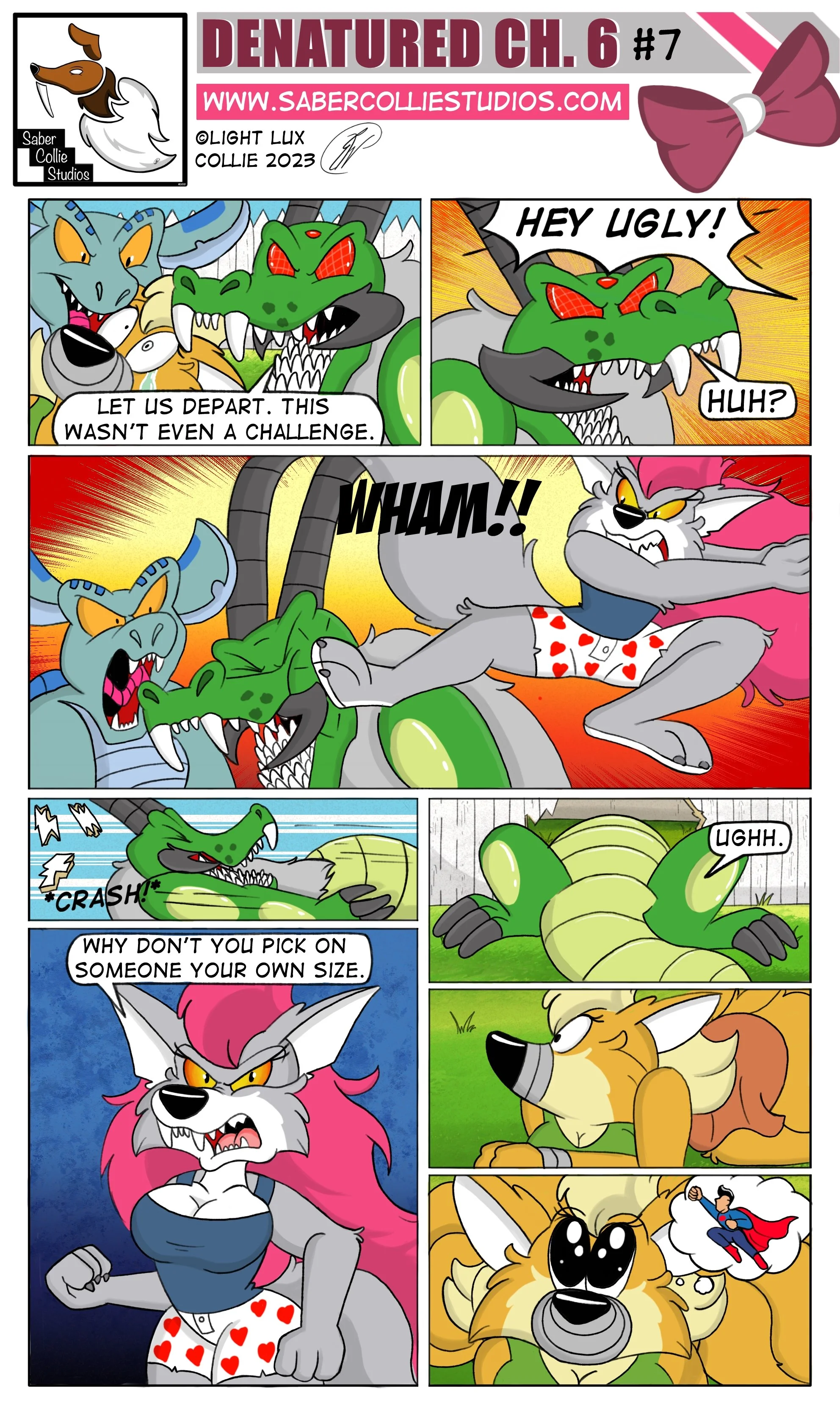 Home of the webcomics Denatured, Comic-Comic and Walk With Me. Saber Collie Studios is an online cartoon art studio individually owned and operated by cartoonist and animator Light Lux Collie.