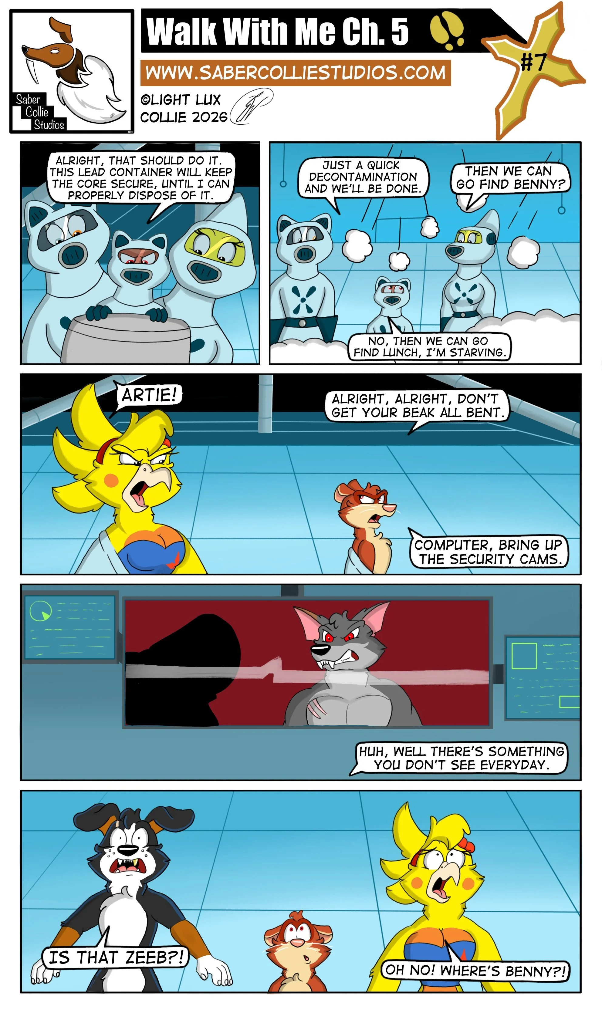 Home of the webcomics Denatured, Comic-Comic and Walk With Me. Saber Collie Studios is an online cartoon art studio individually owned and operated by cartoonist and animator Light Lux Collie.