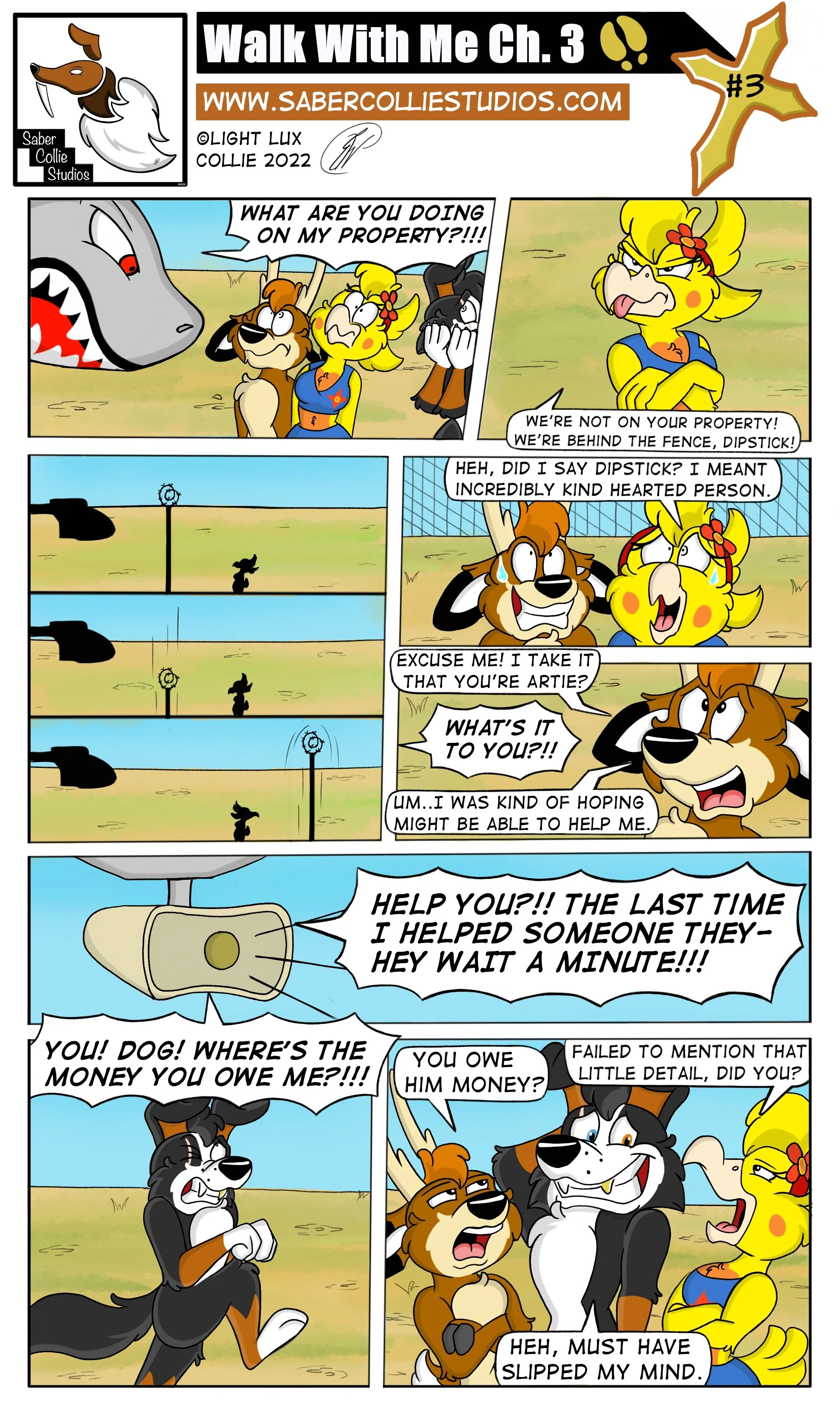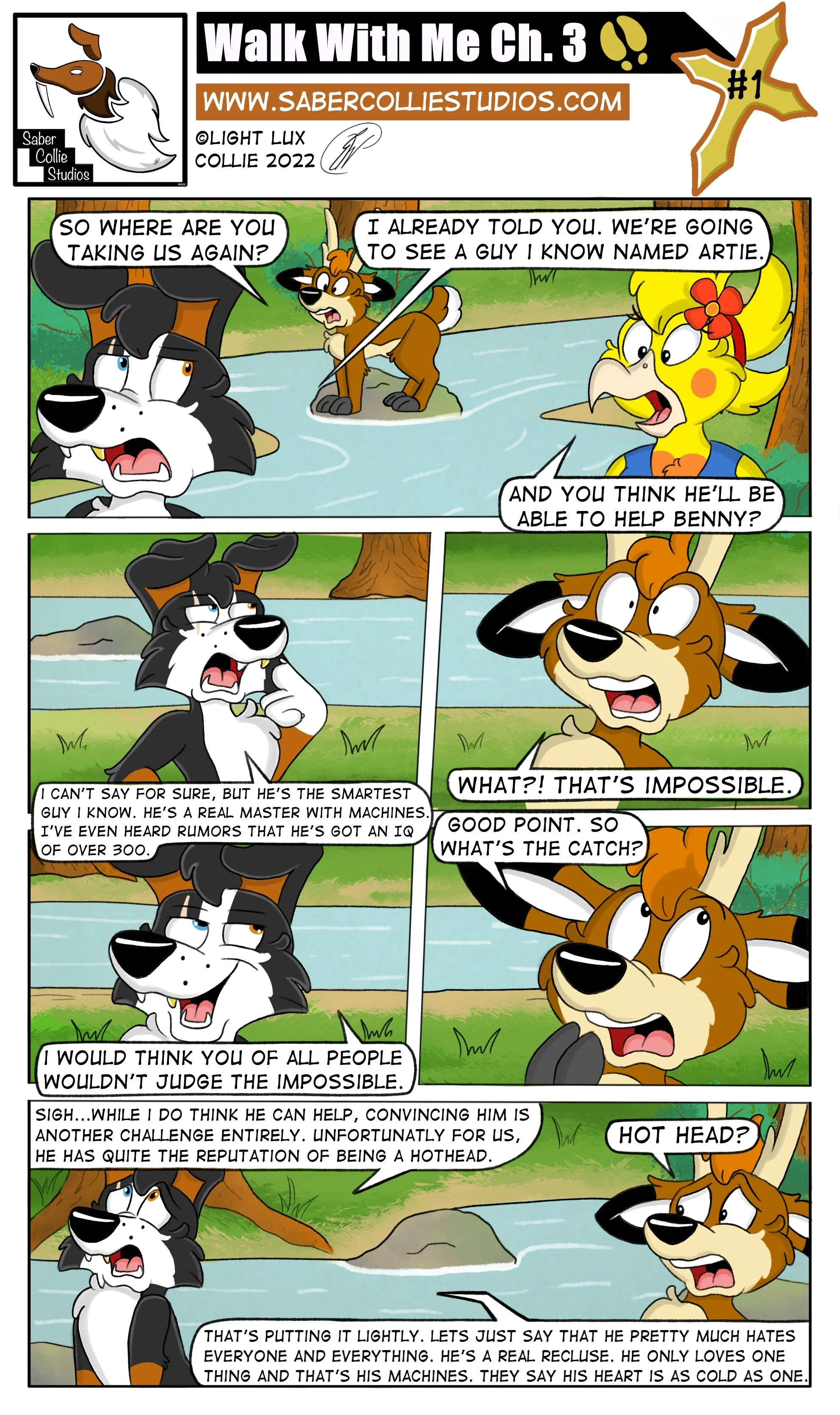 Home of the webcomics Denatured, Comic-Comic and Walk With Me. Saber Collie Studios is an online cartoon art studio individually owned and operated by cartoonist and animator Light Lux Collie.